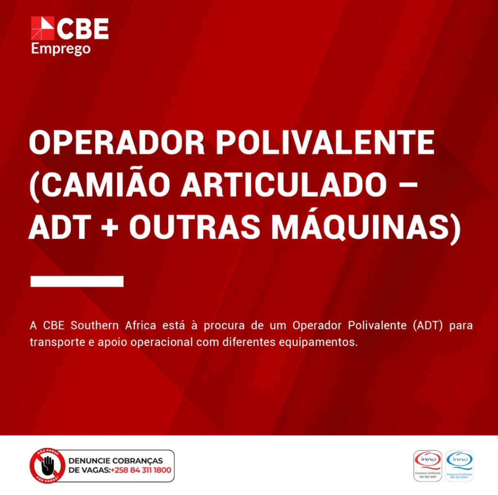 Read MoreA CBE pretende recrutar profissionais para ocupar a posição de: Operador Polivalente (Caminhão Articulado – ADT + Outras Máquinas) Candidaturas