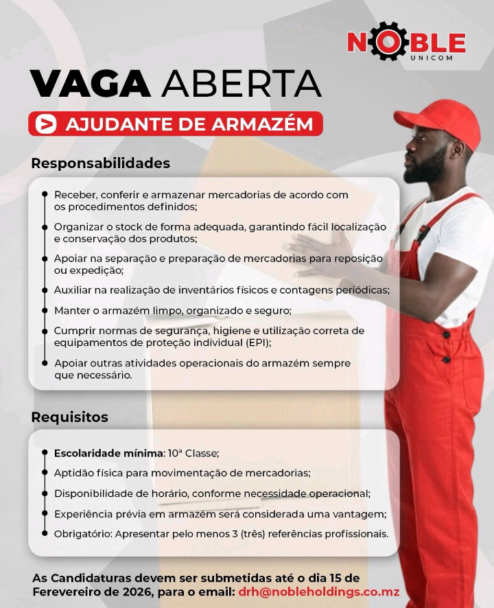 As candidaturas devem ser submetidas até o dia 15 de fevereiro de 2026, para o e-mail: [email protected]