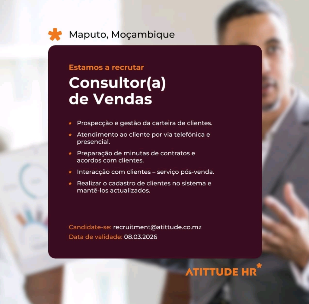 A ATITTUDE HR está a recrutar um(a) Consultor(a) de vendas para um cliente em Maputo, Moçambique.
