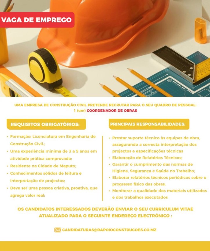 Experiência Profissional: de 3 a 5 anos na coordenação ou supervisão de obras de construção civil.