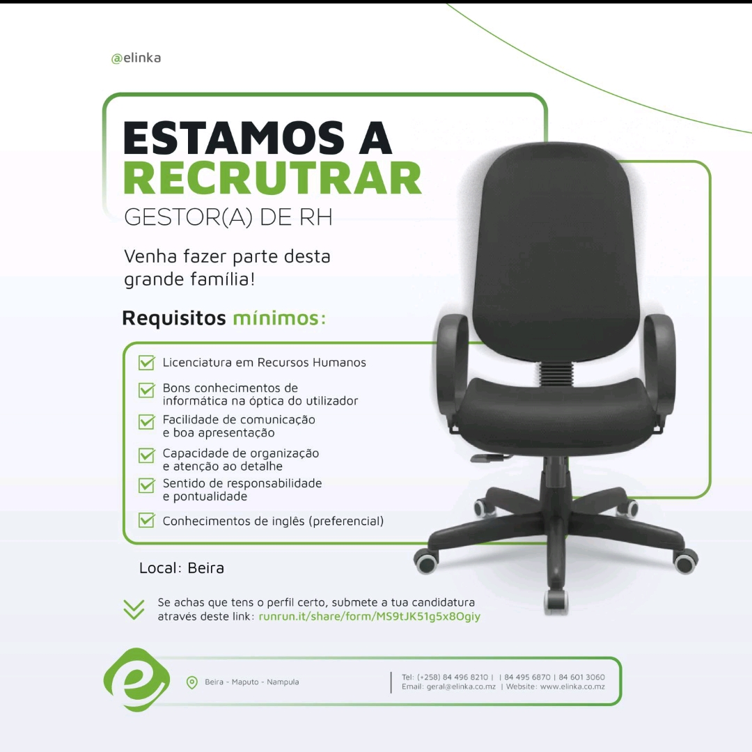 A Elinka Consultoria, está a recrutar Gestor (a) de Recursos Humanos