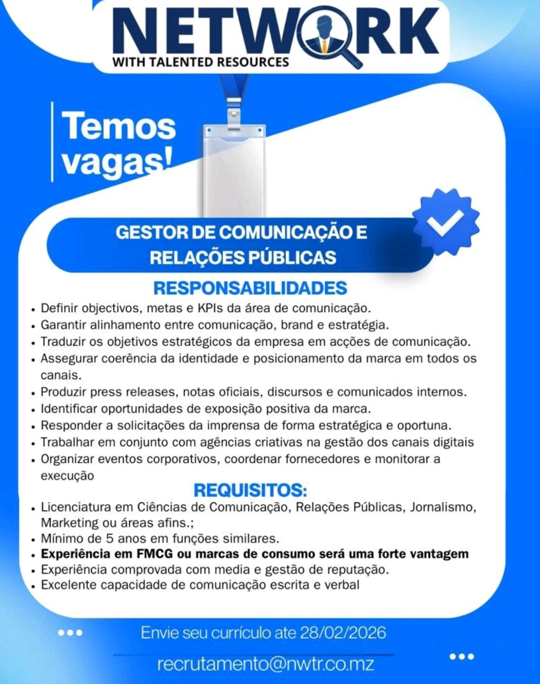 Procuramos por um(a) Gestor de Comunicação e RP, para um cliente do setor FMCG: