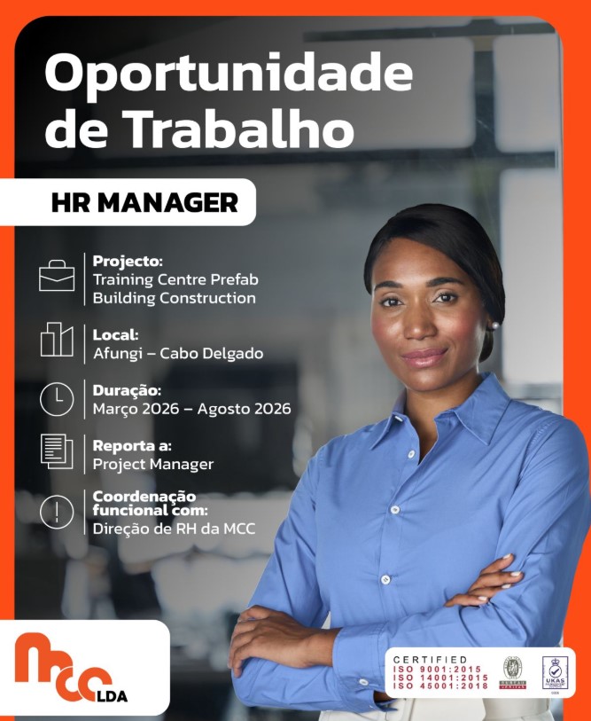 Estamos a recrutar HR Manager para projeto de construção em Afungi – Cabo Delgado (Março a Agosto 2026).
