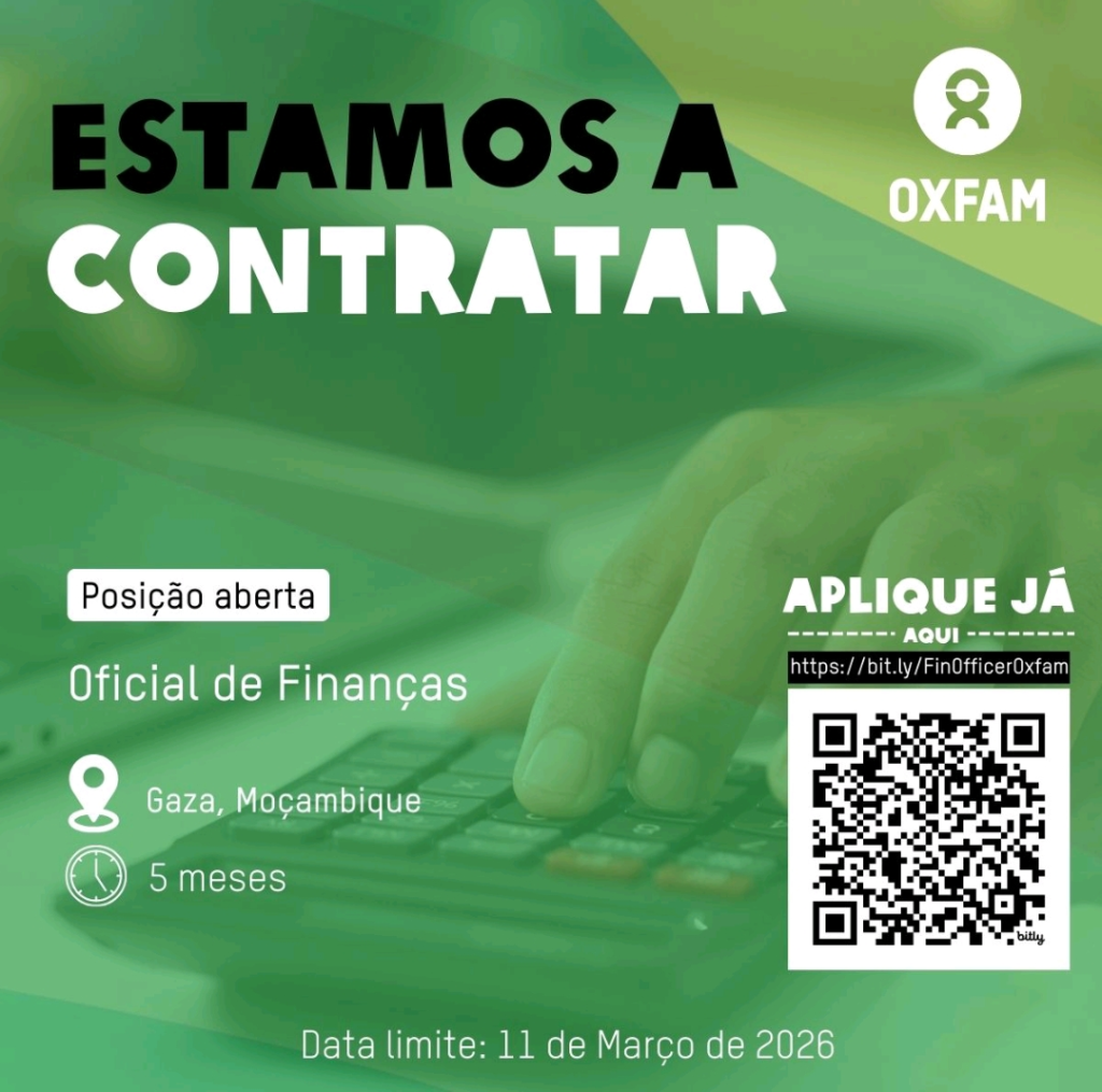 A Oxfam em Moçambique está a recrutar um(a) Oficial de Finanças para apoiar no âmbito da sua resposta à emergência após as cheias na província de Gaza.