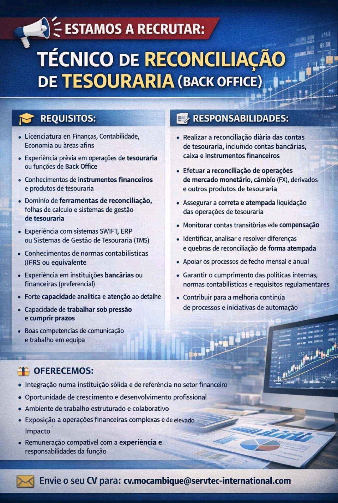 Vaga – Técnico de Conciliação de Tesouraria (Back office) para Maputo